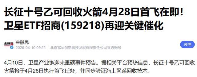 部分媒体也进行了相关性的说明,那就是据相关平台预热信息,长征十号乙可回收火箭将于4月28日执行首飞任务,并同步验证海上网系回收技术。